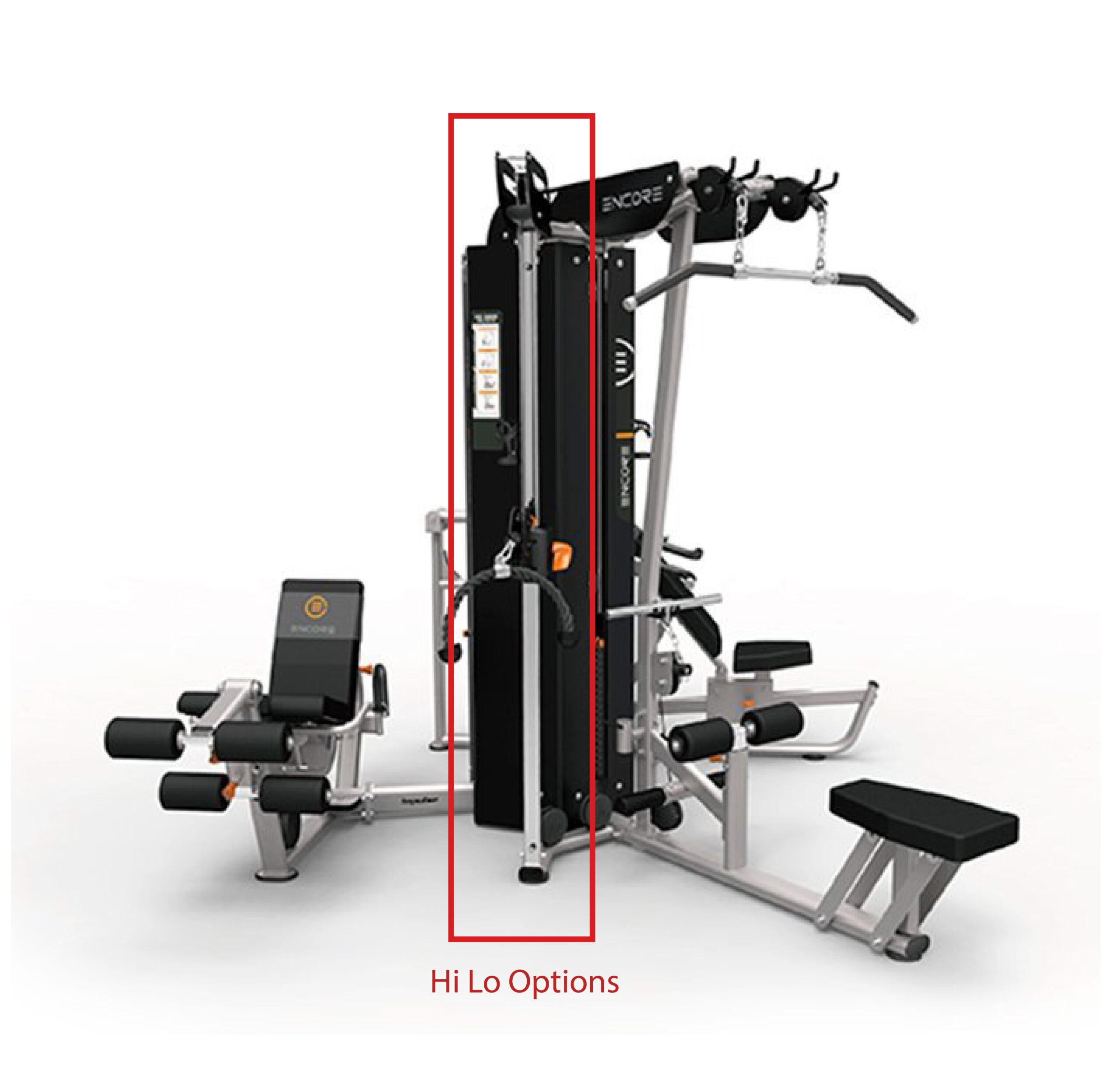 Can add on HI-LO option, this pulley attachment compatible with ES3000 3 station multi gym. Space-saving rectangular design for locating in the corner. HI-LO pulley attachment offers various workouts.